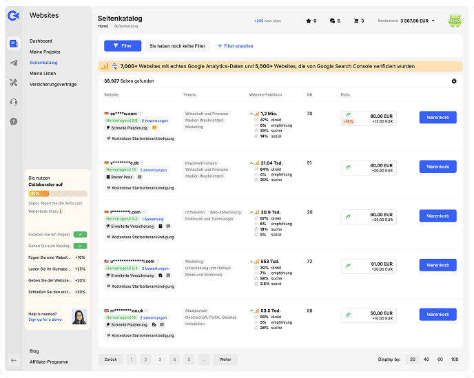 - Wählen Sie die beste Website aus