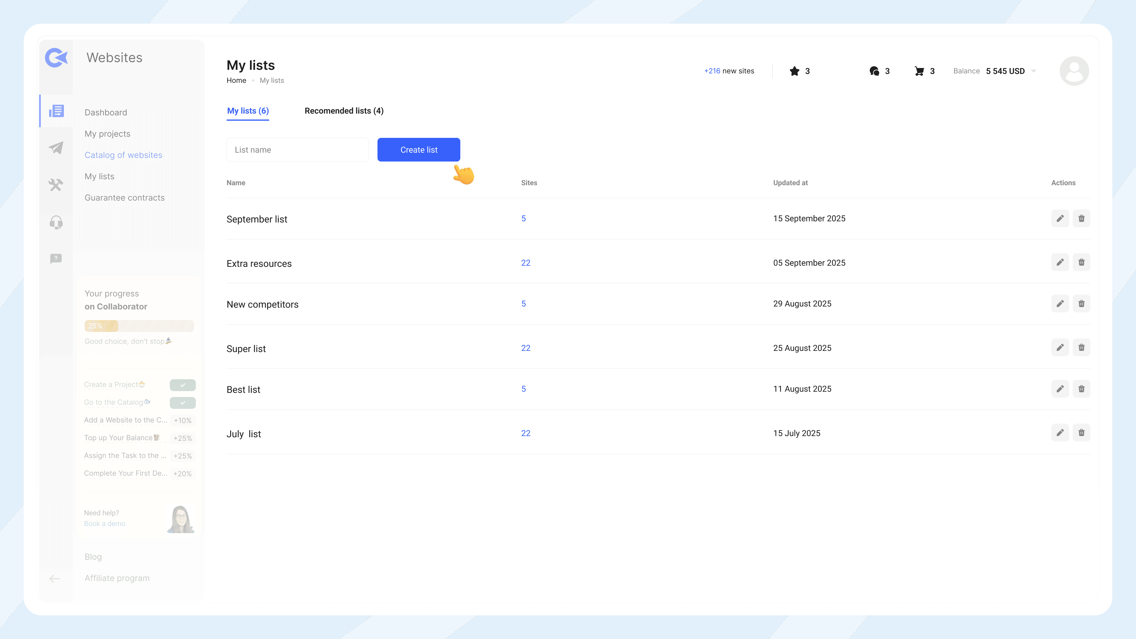 Collaborator ist ein PR-Distributionsmarktplatz, der Marketer, SEO-Experten und PR-Fachleute mit hochautoritären Websites und Telegram-Kanälen verbindet.